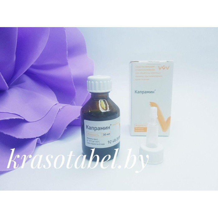 Капрамин: применение Капрамин представляет жидкость, в составе которой содержится центимониум бромид и хлористый алюминий, обладающие кровоостанавливающими свойствами, устранением очагов инфекции, обеззараживает раны с бактерицидным воздействием. Жидкость с синим оттенком активно применяется в стоматологии и других областях медицины. В состав средства не входят опасные и вредные компоненты, что позволяет использовать его для различной категории клиентов, в том числе женщинам в период грудного вскармливания и при беременности. Но в любом случае необходимо учитывать индивидуальные особенности и непереносимость веществ.