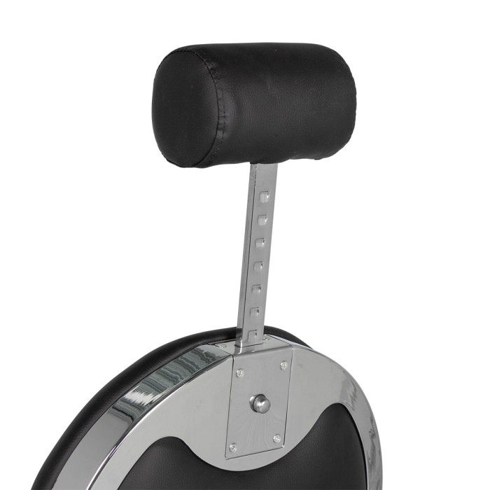 Удобное сидение оснащено широкими подлокотниками для комфорта посетителей. Для поддержания шеи и головы клиента в конструкции предусмотрен мягкий подголовник. Практичная подножка не допустит усталости ног клиентов.