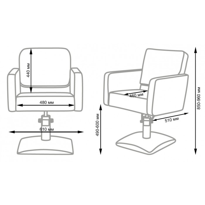 Удобное сидение с мягкой спинкой в сочетании с подлокотниками помогут обеспечить комфорт каждому клиенту. В качестве наполнителя применён плотный поролон, который не образует вмятин в течение длительного срока эксплуатации. Для обшивки использована прочная экокожа, устойчивая к разрывам, растягиванию и протиранию. Уход за поверхностью необычайно прост, потому что материал не впитывает влагу и грязь. Пыль с такой мебели можно удалить сухой текстильной салфеткой, а пятна от косметических продуктов стираются специальными моющими составами для кожи.