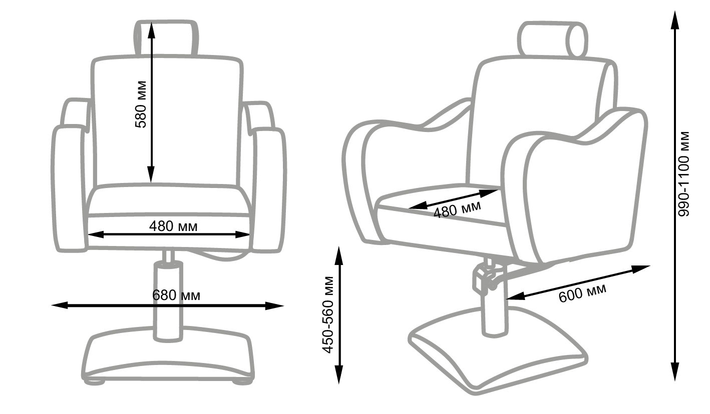В комплект входит: кресло с отстегивающимся подголовником, хромированное основание и гидравлическая система.