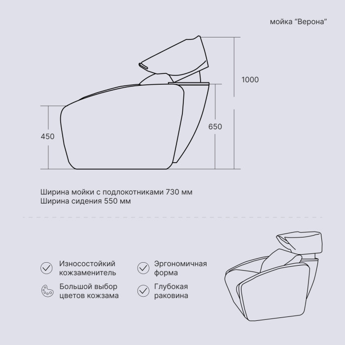 Парикмахерская мойка "Верона" без прострочки - стильное и функциональное решение для вашего салона красоты.